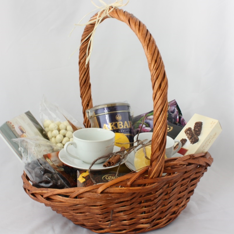 Корзина с чаем и сладостями