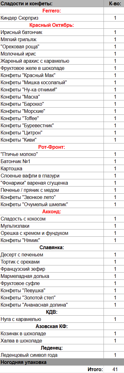 Кол-во сладостей: 41 шт.