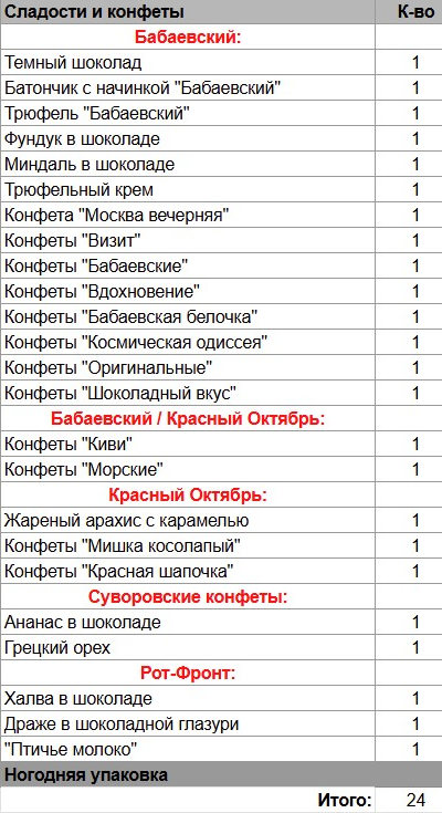 Кол-во сладостей:  24 шт.